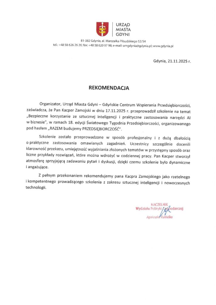 Rekomendacje i opinie traktuję jak taki kompas. Pokazują, co naprawdę ma wartość: praktyka, prostota, uporządkowanie i nacisk na efekty. A to dokładnie te elementy, które chcę jeszcze mocniej rozwijać w 2026 – zarówno w szkoleniach, jak i w kolejnych produktach cyfrowych.